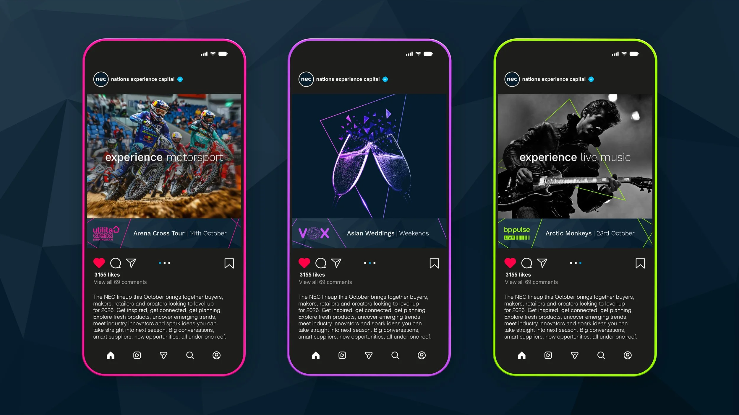 To coincide with its 50th anniversary, the National Exhibition Centre (NEC) appointed LMC to rebrand the organisation in line with a new positioning as the Nation’s Experience Capital - celebrating the shared, unforgettable moments it creates for millions of visitors each year. Once known primarily for its exhibition halls, the NEC has evolved into a multi-venue operator hosting exhibitions, conferences, arena tours, sporting events and immersive experiences.